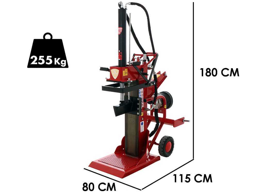 La fendeuse à bois exploite l’action d’une pompe hydraulique performante fonctionnant avec une pression de 230 bars (max) en mesure de pomper 40 l/min et qui fournit l’huile, pompée du réservoir, au cylindre hydraulique qui sert de pousseur.